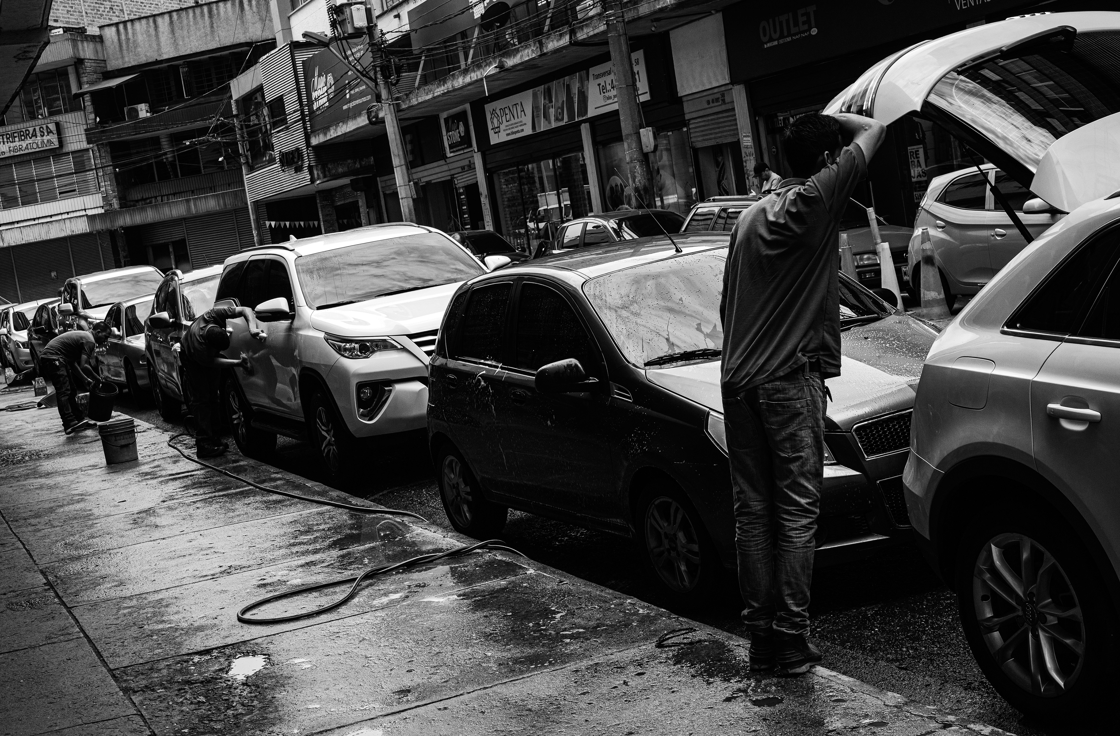 Lavar carros es producto de la necesidad primaria de sobrevivir, de ganarse el día, de usar el propio cuerpo como herramienta. Es el trabajo que existe en esa ciudad que vive en los límites de lo legal, de esa ciudad que no es vista pero que palpita y lucha todos los días.
